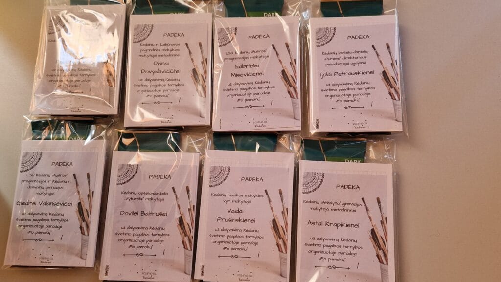 Artėjant Tarptautinei Mokytojų dienai Tarnyboje atidarėme ne dailės mokytojų parodą „Po pamokų“. Šventės metu parodos dalyvės papasakojo apie tai, kaip gimė jų kūriniai, nuo ko viskas prasidėjo. Kėdainių lopšelio-darželio „Vyturėlis“ mokytoja Dovilė Baltrušė visiems dovanojo jautrias savo kūrybos eiles, o Kėdainių muzikos mokyklos mokytojų Vaidos Prušinskienės ir Editos Bujanauskienės atliekama muzika glostė visų širdis. Parodoje eksponuojami Kėdainių lopšelio-darželio „Vyturėlis“ mokytojos Dovilės Baltrušės, Kėdainių r. Labūnavos pagrindinės mokyklos mokytojos Dianos Dovydavičiūtės, Kėdainių „Atžalyno“ gimnazijos mokytojos